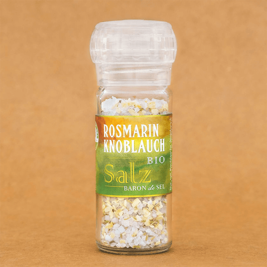 • Bio Rosmarin Knoblauch Salz Keramikmühle (70g)