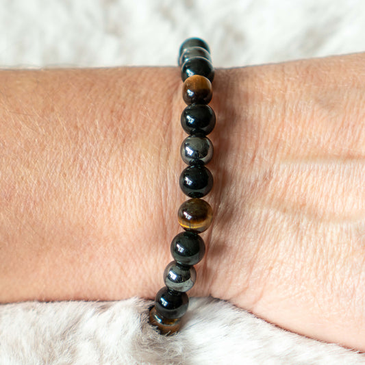 • Armband Hämatit/Obsidian/Tigerauge