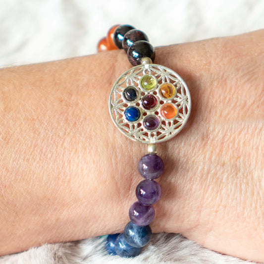 • Armband Tigerauge/Sonnenstein/Amethyst