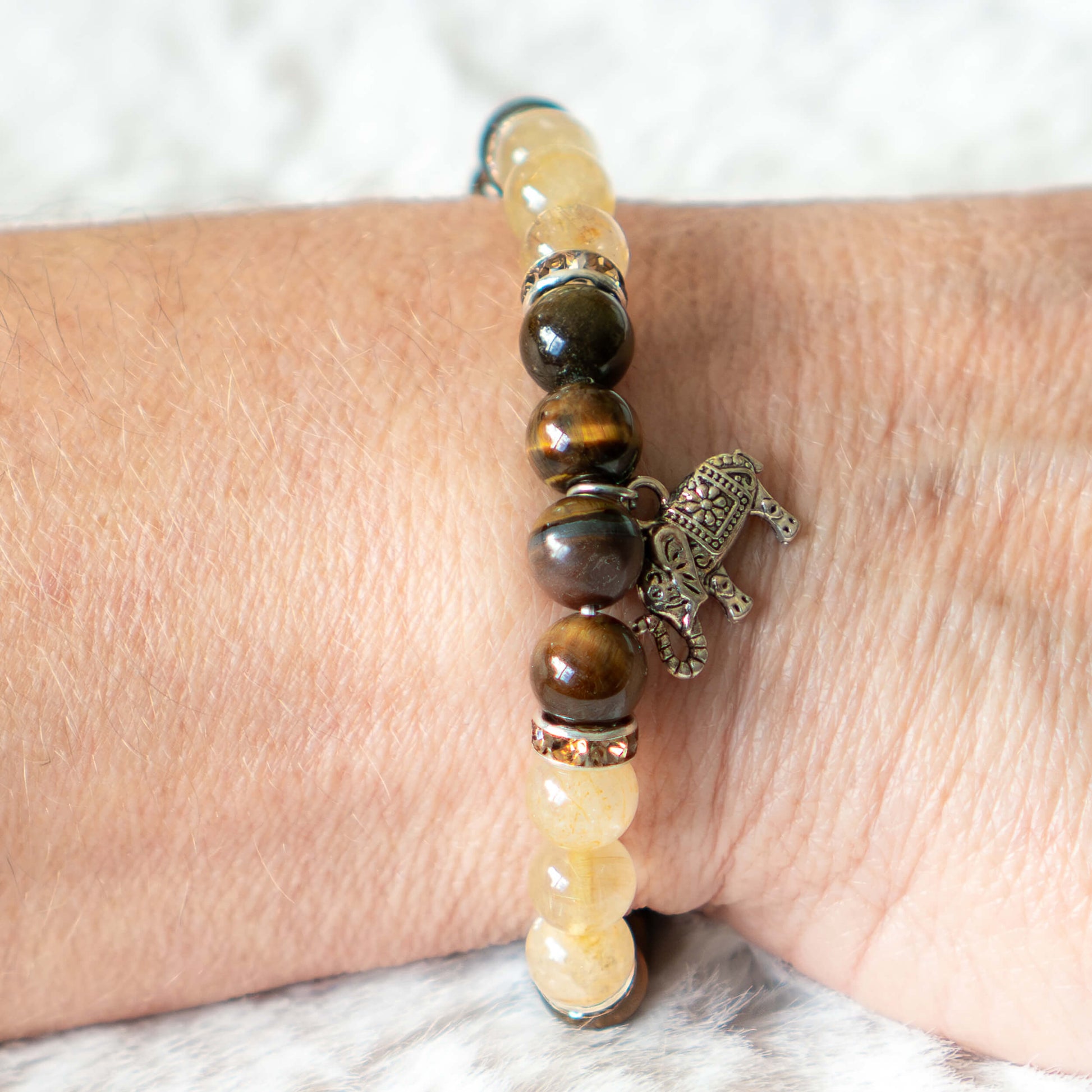 Passend zu: Armband Tigerauge/Rutilquarz mit Elefant