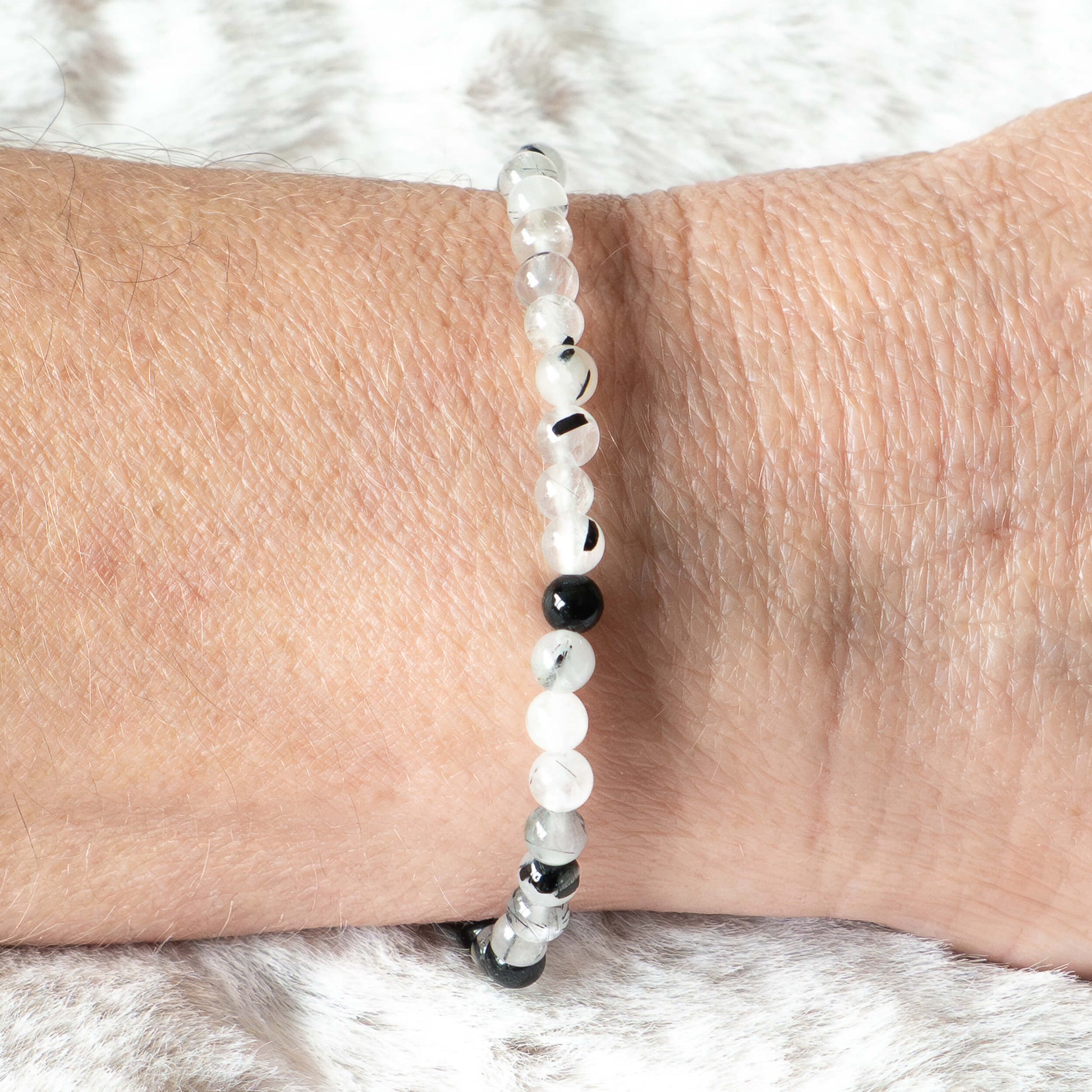 Turmalinquarz kombiniert die Eigenschaften von schwarzem Turmalin und Bergkristall. In diesem Armband vereinigen sich die Schutz- und Erdungseigenschaften von Turmalin mit der reinigenden und hellen Energie vom Bergkristall. Sehr kraftvoll!