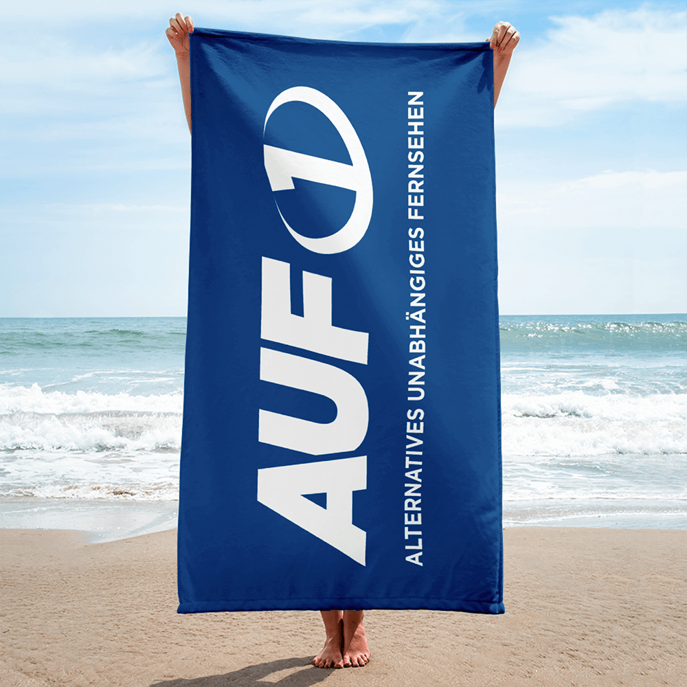 Mit diesem AUF1-Badetuch ziehen Sie am Strand, am See oder im Park alle Blicke auf sich und machen Werbung für Ihren Lieblingssender.