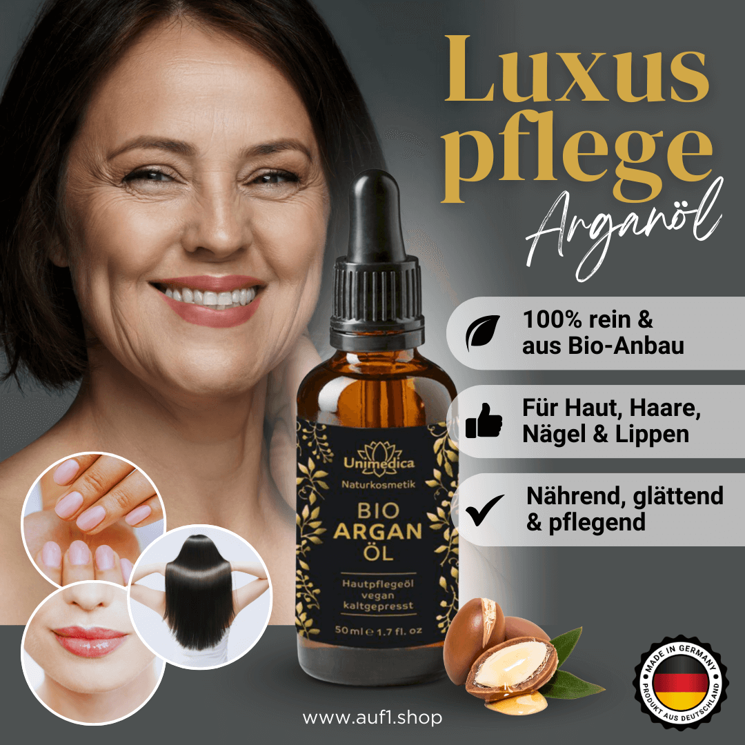 Mit seiner natürlichen Zusammensetzung und der Vielseitigkeit in der Anwendung ist Bio Arganöl von Unimedica die perfekte Wahl für eine rundum gepflegte Haut, Haare und Nägel.