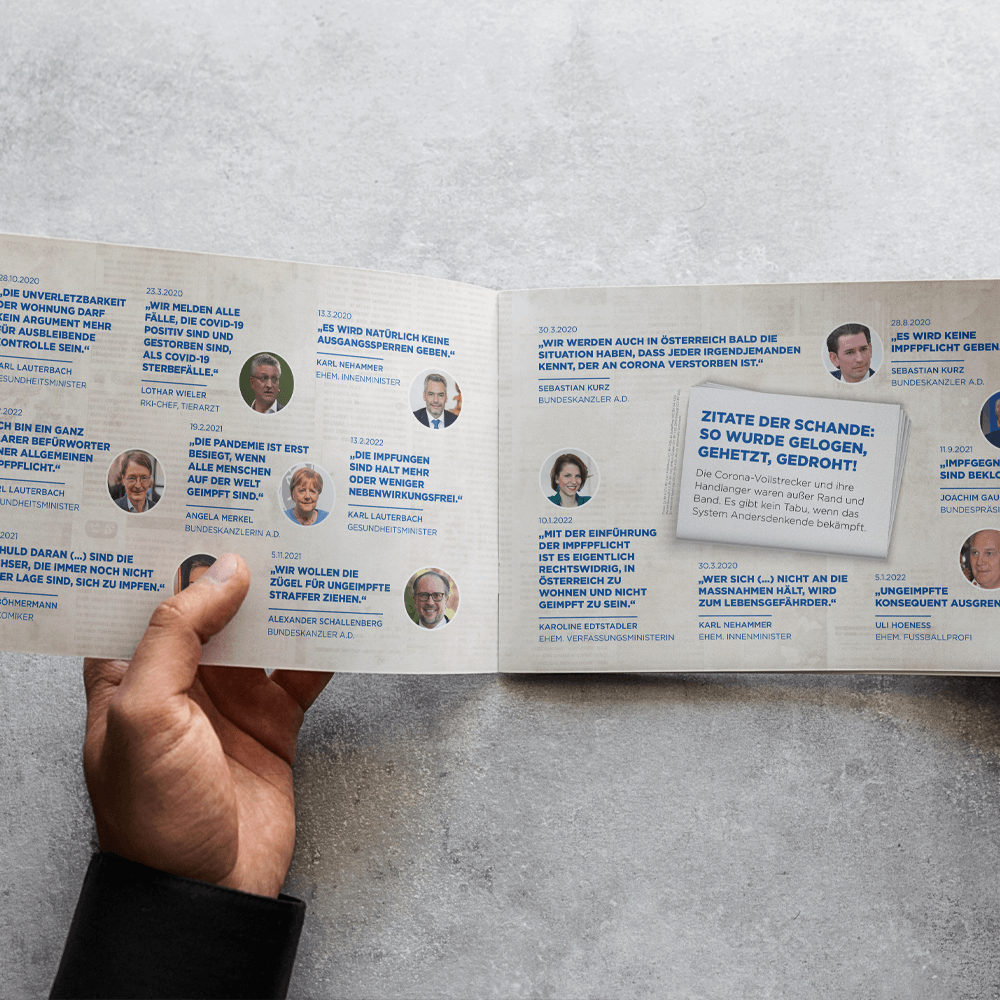 Vor allem aber braucht es Aufarbeitung, bei der die Verantwortlichen zur Rechenschaft gezogen werden. Die Verantwortlichen in unserem Land dürfen nicht so einfach davonkommen. Ihre Taten wiegen zu schwer. Wir vergessen nichts. Und wir fordern: Corona-Verbrecher auf die Anklagebank!