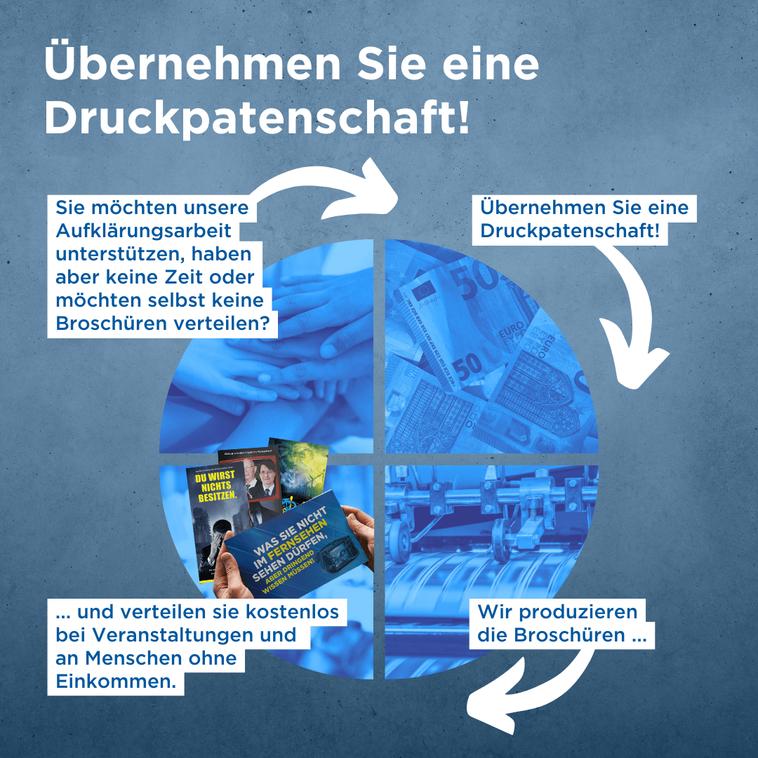 Informationen zur Patenschaft: Mit einer Patenschaft unterstützen Sie die kostenlose Verbreitung unserer Aufklärungsbroschüre, etwa bei Veranstaltungen oder an Menschen, die kein Einkommen haben.