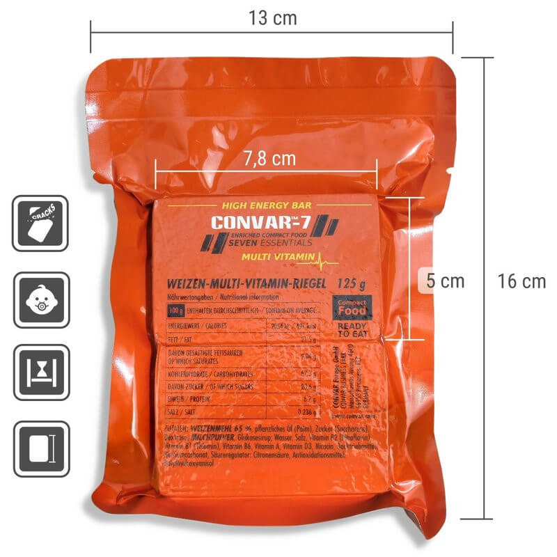 Mit Ihren guten inneren Werten, der robusten und kompakten Verpackung und der langen Haltbarkeit (15 Jahre ab Herstellung) auch bei extremen Witterungen sind die CONVAR Energieriegel bestens geeignet für den Einsatz in Extremsituationen wie: