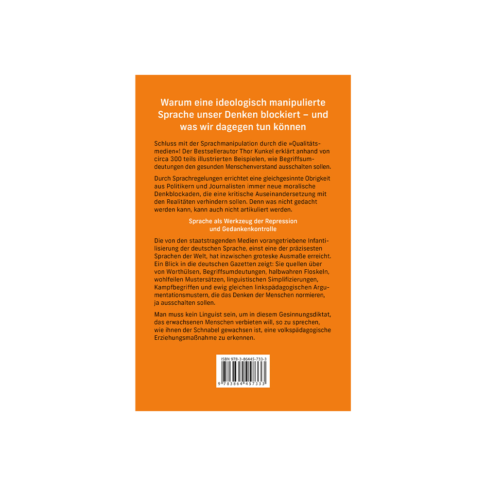 Schluss mit der Sprachmanipulation durch die „Qualitätsmedien“! Der Bestsellerautor Thor Kunkel erklärt anhand von circa 300 teils illustrierten Beispielen, wie Begriffsumdeutungen den gesunden Menschenverstand ausschalten sollen.