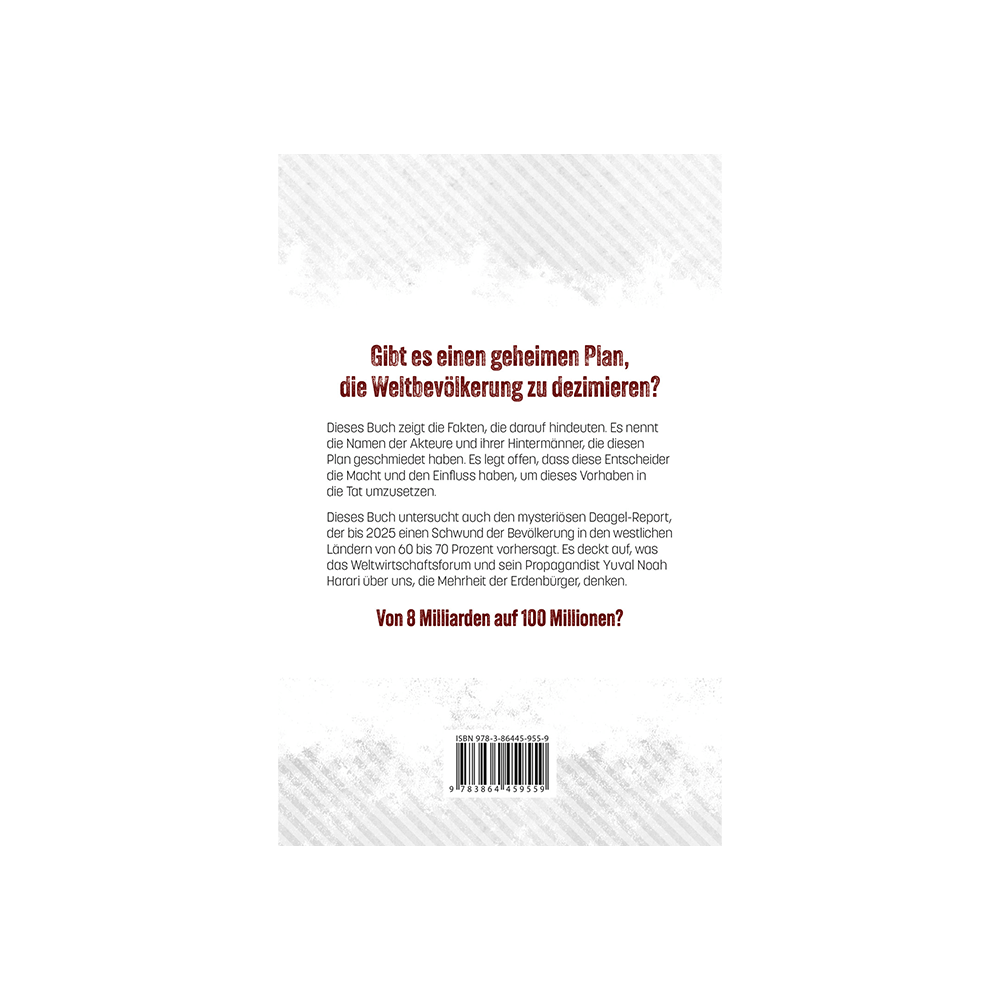 Dieses Buch untersucht auch den mysteriösen Deagel-Report, der bis 2025 einen Schwund der Bevölkerung in den westlichen Ländern von 60 bis 70 Prozent vorhersagt. Es deckt auf, was das Weltwirtschaftsforum und sein Propagandist Yuval Noah Harari über uns, die Mehrheit der Erdenbürger, denken.