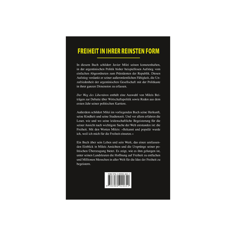 Doch „Der Weg des Libertären“ ist mehr als nur eine Autobiografie. Es ist ein Manifest, das seine visionären – und oft umstrittenen – Ansichten zur Wirtschaft und zur Gesellschaft offenlegt. Zudem enthält es eine Auswahl seiner bedeutendsten Reden, Essays und Reflexionen aus den frühen Jahren seiner Karriere, in denen er seine Ideen in den politischen Diskurs einbrachte. Seine provokante und polarisierende Haltung hat nicht nur Argentinien, sondern auch die Welt in Aufruhr versetzt.
