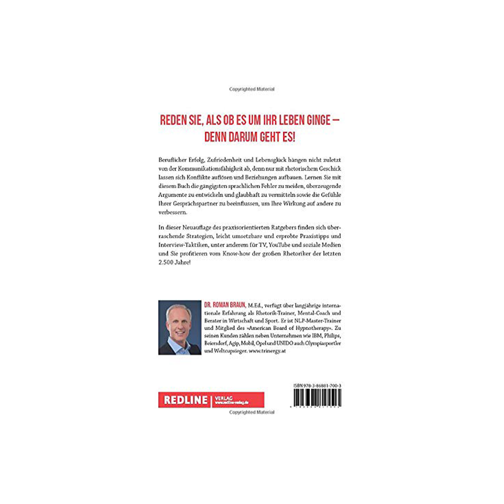 Die Qualität Ihrer Kommunikation bestimmt Ihren beruflichen Erfolg, Ihre Zufriedenheit und auch Ihr Lebensglück. Kommunikationsexperte Dr. Roman Braun veranschaulicht, wie einfach es ist, die Macht der Rhetorik für sich zu nutzen. Entscheidend ist, wie man seine Qualitäten präsentiert, Konflikte löst und Beziehungen aufbaut. In seinem Buch präsentiert er bewährtes Rhetorik-Know-how der letzten 2 500 Jahre, von Aristoteles bis Hypno-Rhetorik®.