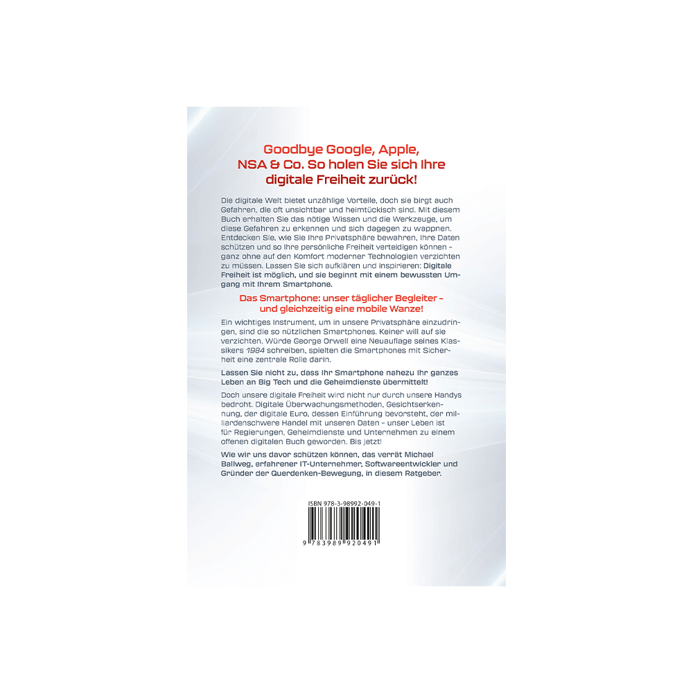 Michael Ballweg bietet seinen Lesern eine umfassende Anleitung, wie sie sich vor digitaler Überwachung schützen, ihre Privatsphäre bewahren und in einer zunehmend überwachten Welt digitale Freiheit erlangen können. Machen Sie „Big Brother“ zum „Big Loser“.