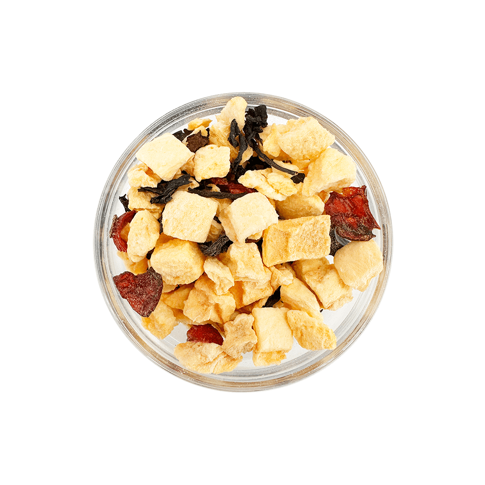 Ein sommerlich-erfrischender Genuss: Diese harmonische Mischung aus kräftigem Assam-Schwarztee und saftig-süßen Pfirsichstücken wird durch fruchtige Hagebuttenschalen und spritzige Orangenschale abgerundet. Ein Hauch natürliches Pfirsicharoma verleiht dem Tee seine intensive Fruchtnote – perfekt als Eistee an warmen Tagen oder auch heiß genossen ein fruchtiges Geschmackserlebnis.