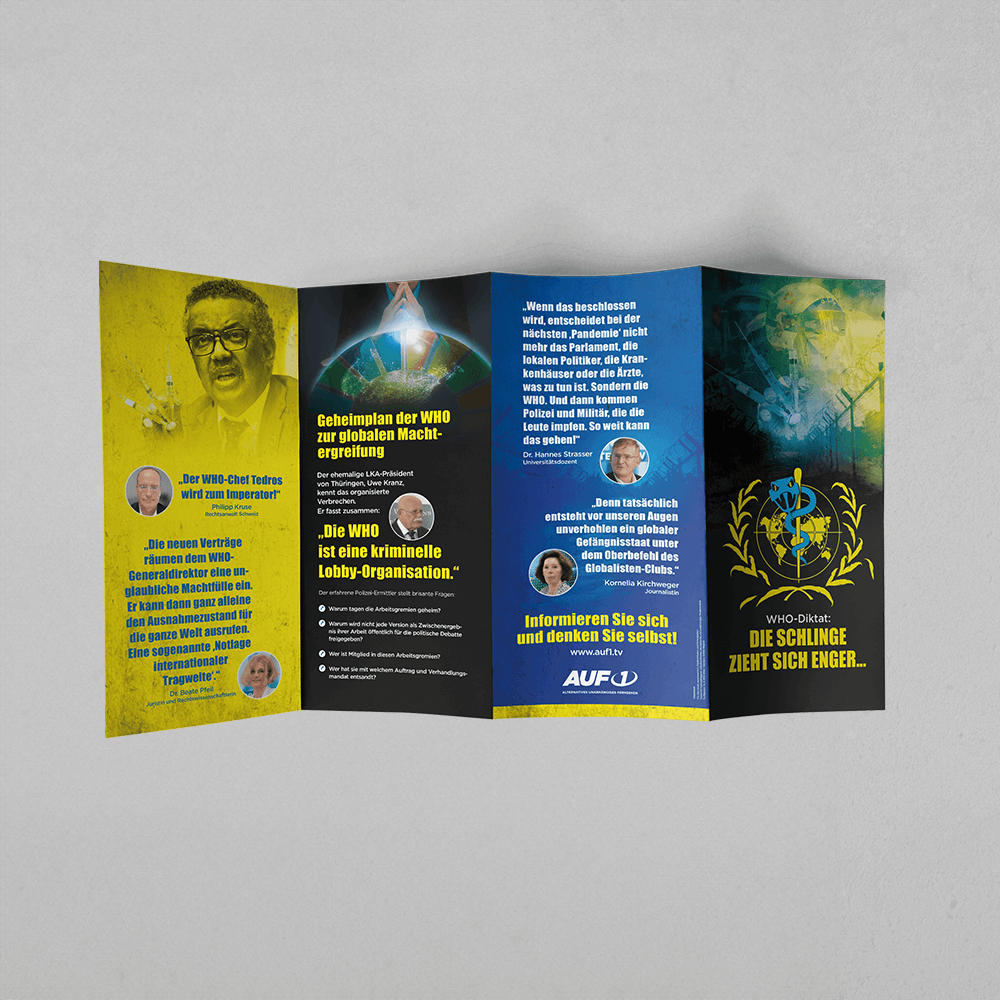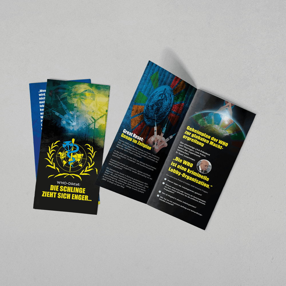 Aufklärung und Information ist die Waffe, die die Machtelite am meisten fürchtet. Deshalb gibt es dieses Faltblatt. Es demaskiert den Pandemievertrag und die damit verbundenen Internationalen Gesundheitsvorschriften und zeigt, was er ist. Jeder kann mithelfen, den Plan der Mächtigen zu durchkreuzen. Indem er dieses Faltblatt großflächig verteilt. Unter jenen, die noch nicht erfahren haben, was im Hintergrund wirklich läuft. Damit immer mehr Menschen durchschauen, was hier gespielt wird.