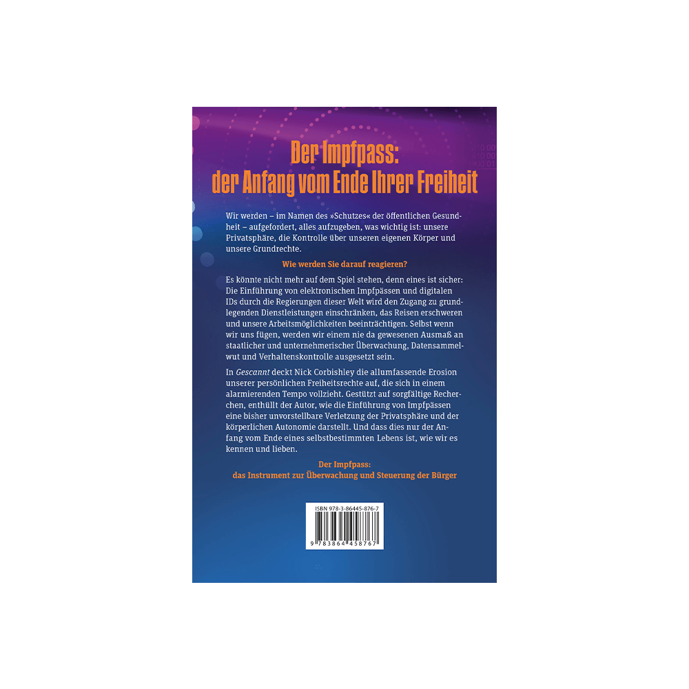 In „Gescannt“ deckt Nick Corbishley die allumfassende Erosion unserer persönlichen Freiheitsrechte auf, die sich in einem alarmierenden Tempo vollzieht. Gestützt auf sorgfältige Recherchen, enthüllt der Autor, wie die Einführung von Impfpässen eine bisher unvorstellbare Verletzung der Privatsphäre und der körperlichen Autonomie darstellt. Und dass dies nur der Anfang vom Ende eines selbstbestimmten Lebens ist, wie wir es kennen und lieben.