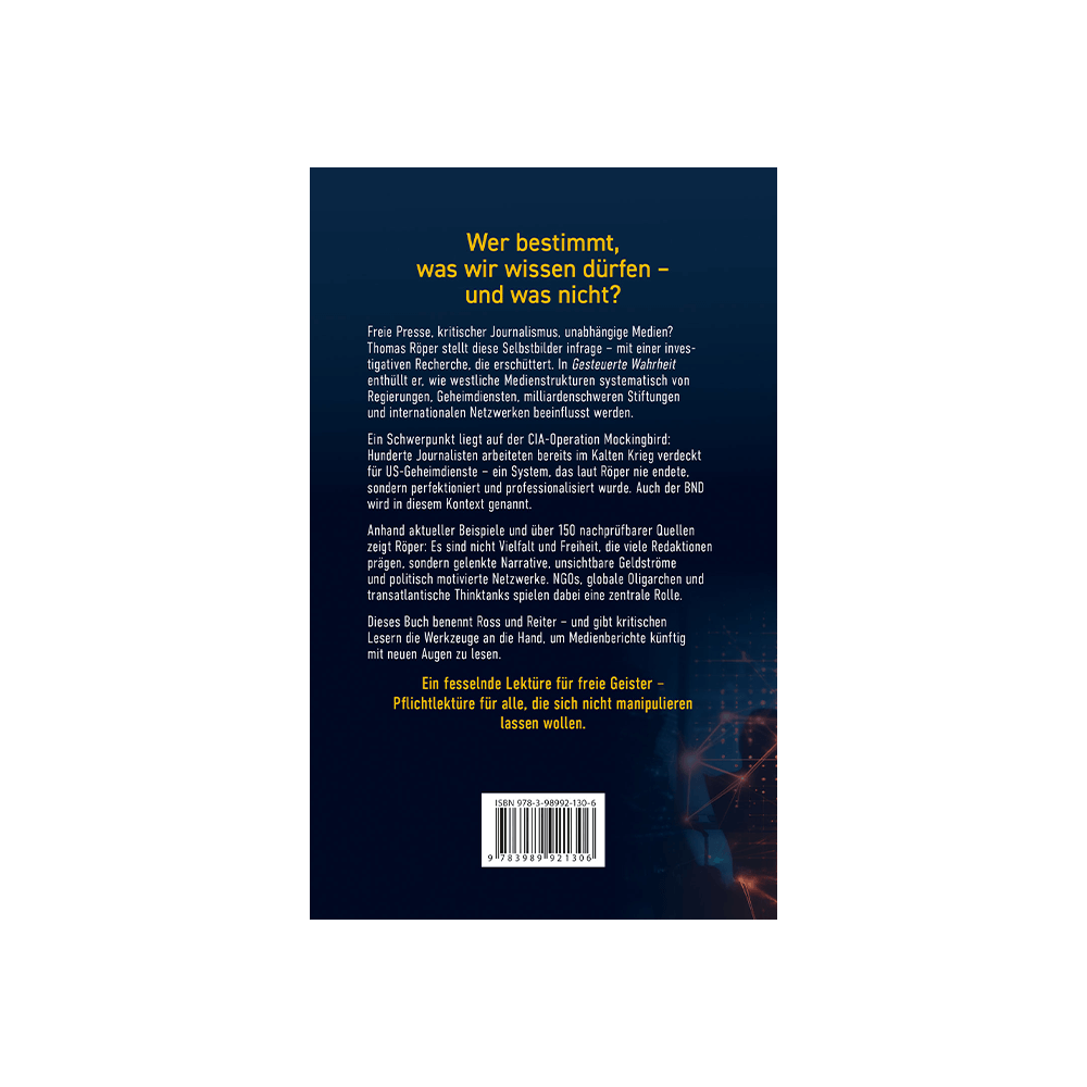 Freie Presse, kritischer Journalismus, unabhängige Medien? Thomas Röper stellt diese Selbstbilder infrage – mit einer investigativen Recherche, die erschüttert. In „Gesteuerte Wahrheit“ enthüllt er, wie westliche Medienstrukturen systematisch von Regierungen, Geheimdiensten, milliardenschweren Stiftungen und internationalen Netzwerken beeinflusst werden.