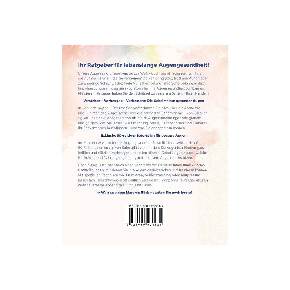 In „Gesunde Augen – Bessere Sehkraft“ erfahren Sie alles über die Anatomie und Funktion des Auges sowie über die häufigsten Sehprobleme – von Kurzsichtigkeit über Makuladegeneration bis hin zu Augenerkrankungen wie grauem und grünem Star. Sie lernen, wie Ernährung, Stress, Bluthochdruck und Diabetes Ihr Sehvermögen beeinflussen – und was Sie dagegen tun können.