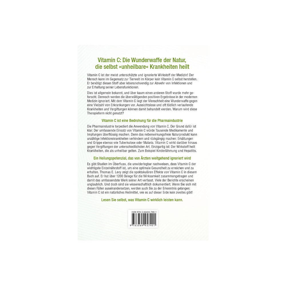 Es gibt Studien im Überfluss, die unwiderlegbar nachweisen, dass Vitamin C der wichtigste Einzelnährstoff ist, um eine optimale Gesundheit zu erreichen und zu erhalten. Thomas E. Levy zeigt die spektakulären Effekte von Vitamin C in diesem Buch auf. Er hat über 1.200 Belege für die Wirksamkeit zusammengetragen und damit das umfassendste Werk seiner Art verfasst. Viele der Berichte erscheinen unglaublich. Und doch sind sie wissenschaftlich dokumentiert. Wenn Sie sich mit diesen Fällen auseinandersetzen, werden auch Sie zu der Erkenntnis gelangen: Vitamin C ist ein natürliches Heilmittel, wie es auf dieser Erde kein zweites gibt!