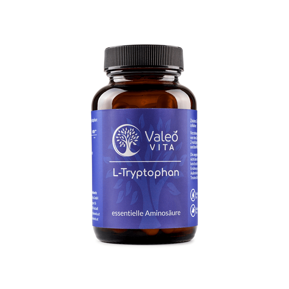 L-Tryptophan ist eine essentielle Aminosäure, die der Körper nicht selbst herstellen kann und die deshalb über die Nahrung oder Nahrungsergänzungsmittel aufgenommen werden muss.