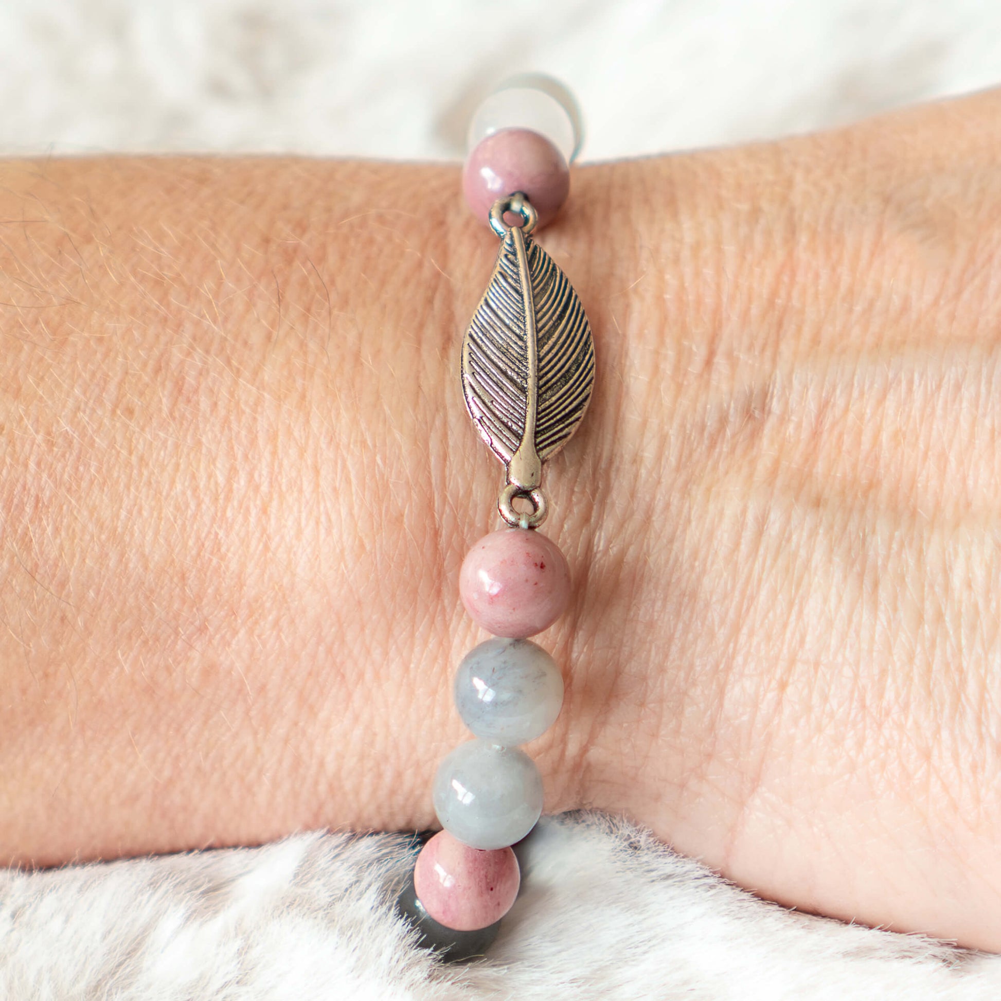 Passend zu: Mala Armband Rhodonit/grauer Quarz mit Feder