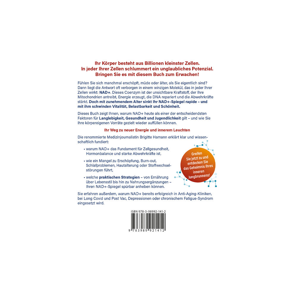 Ob mehr Energie im Alltag, bessere Konzentration, straffe Haut oder ein starkes Herz: NAD+ ist der zentrale Schalter für Vitalität. Dieses Buch führt Sie Schritt für Schritt durch die faszinierende Welt der Zellenergie – und zeigt, wie Sie aktiv Einfluss auf Ihre biologische Uhr nehmen können.