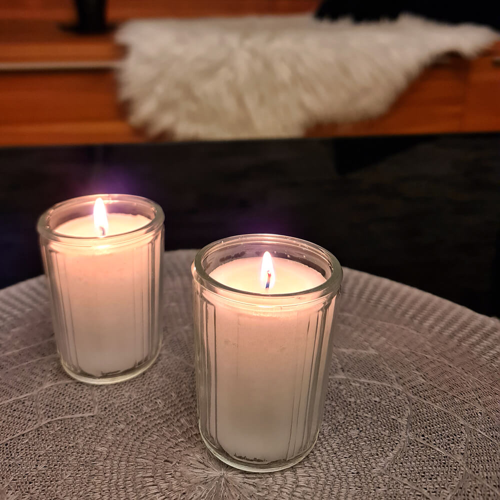 Das Glas sorgt für einen stabilen Stand und verhindert, dass das flüssige Wachs während des Abbrennens ausläuft.