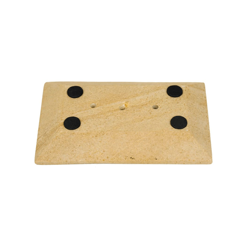 Diese schöne Seifenschale besteht aus Sandstein, mit schwarzen Noppen an der Unterseite, um ein Wegrutschen zu verhindern. Sie eignet sich für alle unsere Seifen.