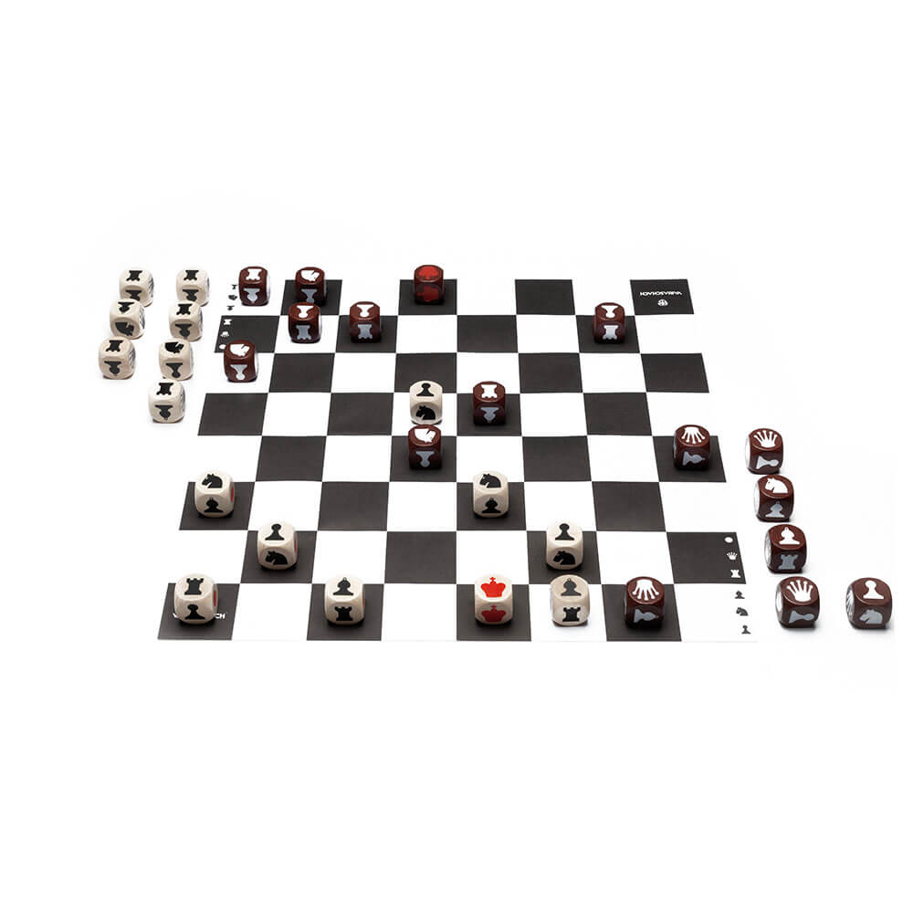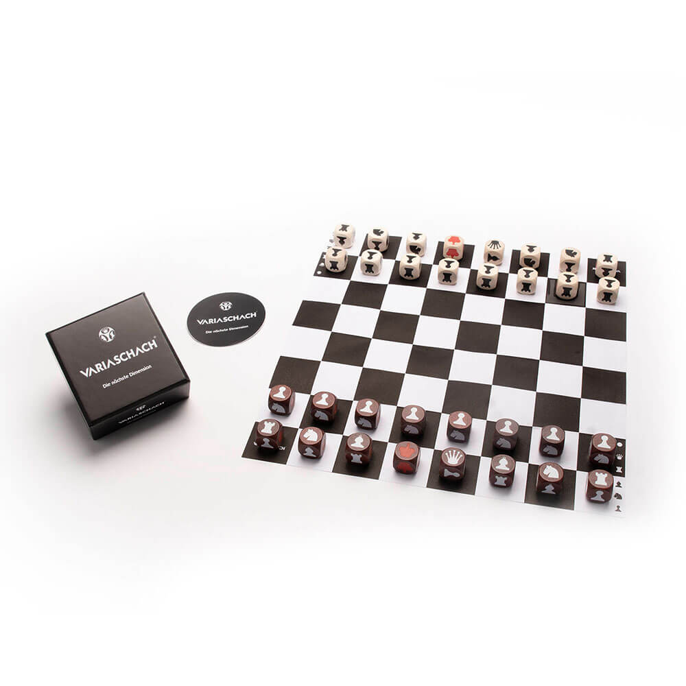 Der Schlüssel zu Variaschach liegt in der Verwendung von Würfeln anstelle von festen Figuren. Jeder der 32 Würfel repräsentiert eine Schachfigur mit den üblichen Bewegungsmustern, jedoch mit einer einzigartigen Wendung. Jeder Würfel ist mit den Symbolen für Bauer, Springer, Läufer, Turm und Dame versehen, begleitet von einem auffälligen roten Punkt. Doch hier kommt das innovative Element ins Spiel – die Würfel werden bei jedem Zug gedreht, entweder in regelmäßigen Abständen oder auf völlig zufällige Weise.