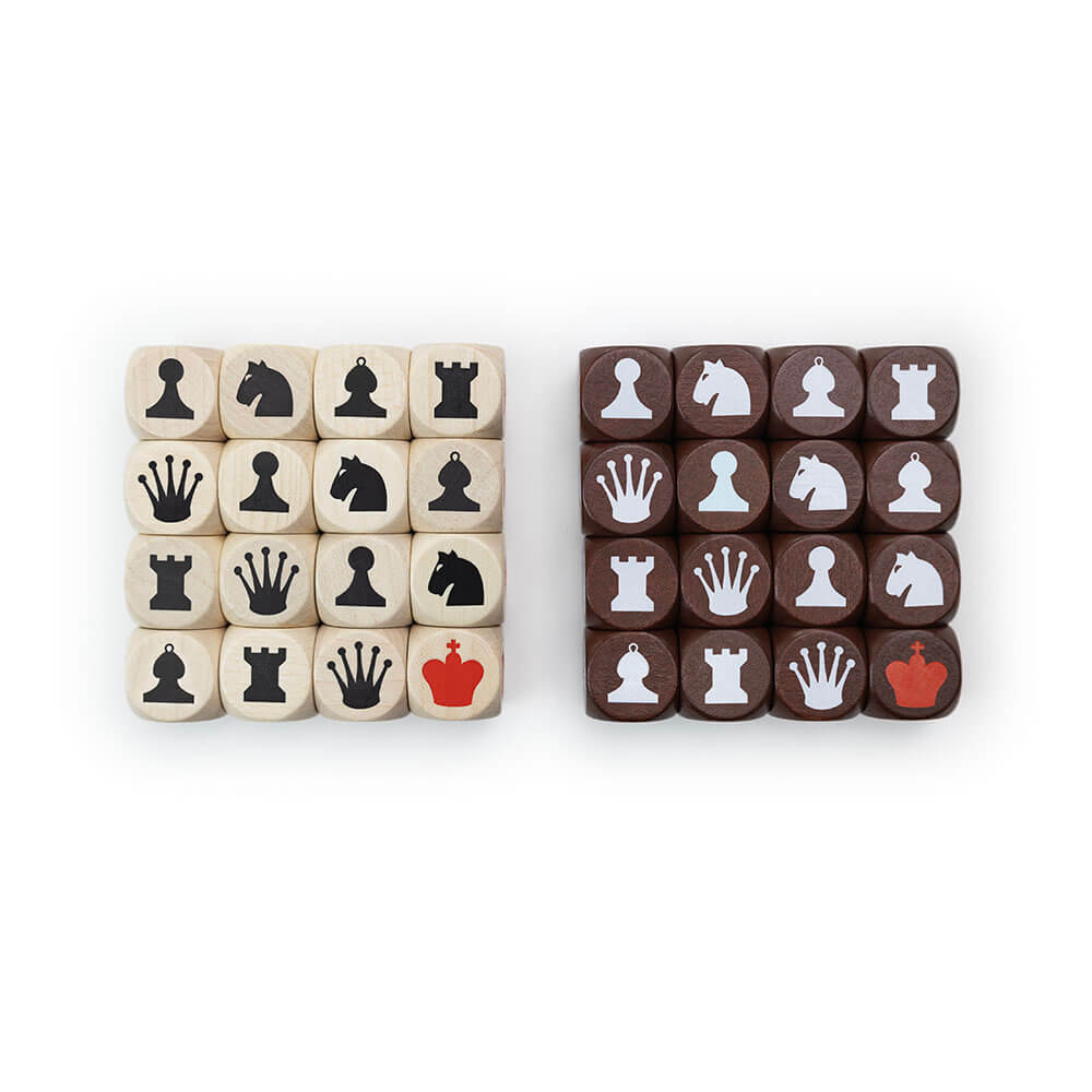 • 16 weiße und 16 dunkle Würfel aus Buchenholz mit hochwertigem Prägedruck