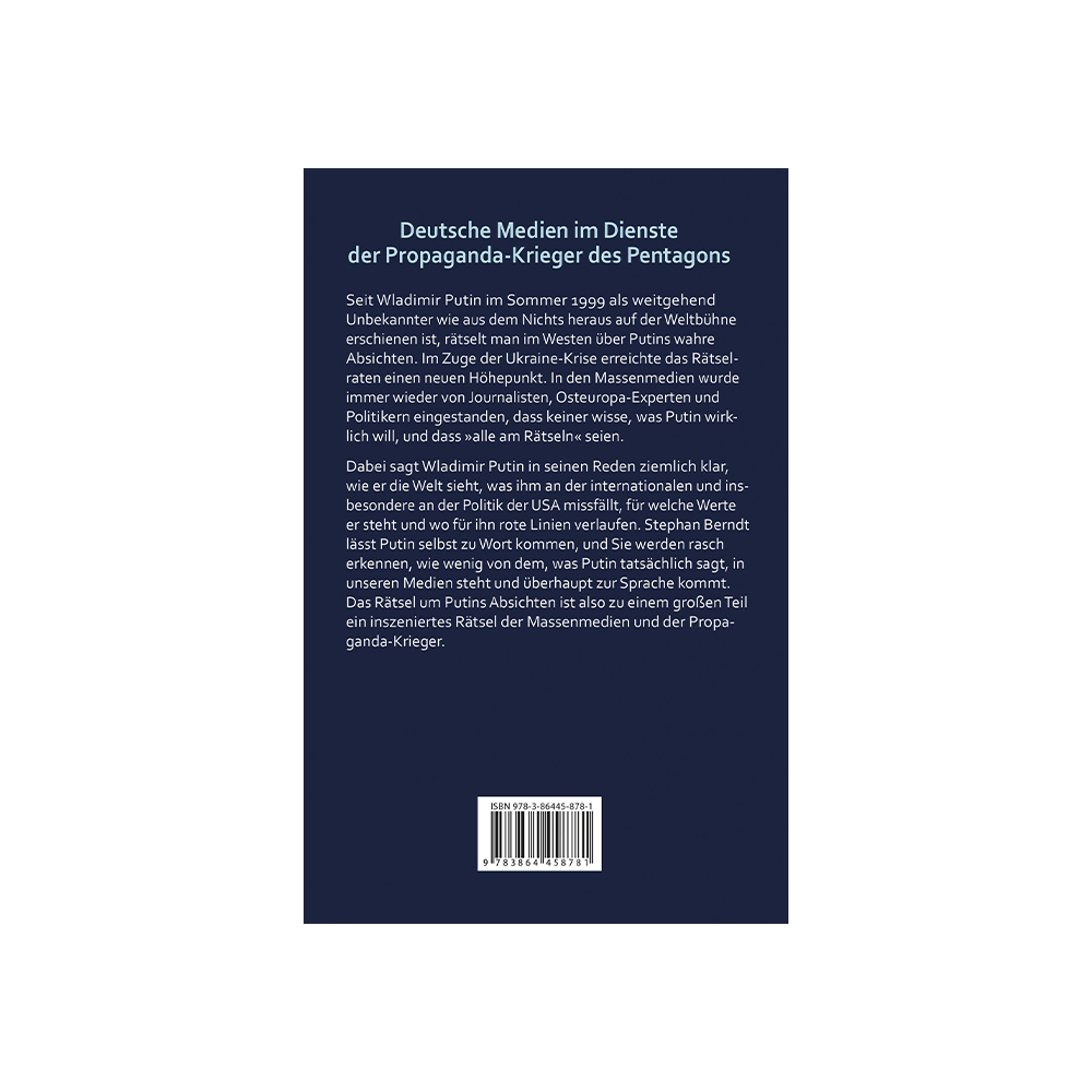 Dabei sagt Wladimir Putin in seinen Reden ziemlich klar, wie er die Welt sieht, was ihm an der internationalen und insbesondere an der Politik der USA missfällt, für welche Werte er steht und wo für ihn rote Linien verlaufen. Stephan Berndt lässt Putin selbst zu Wort kommen, und Sie werden rasch erkennen, wie wenig von dem, was Putin tatsächlich sagt, in unseren Medien steht und überhaupt zur Sprache kommt. Das Rätsel um Putins Absichten ist also zu einem großen Teil ein inszeniertes Rätsel der Massenmedien und der Propaganda-Krieger.