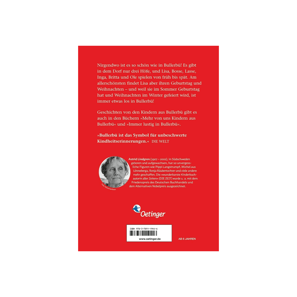 Es gibt in dem kleinen Dorf nur drei Höfe, und Lisa, Bosse, Lasse, Inga, Britta und Ole spielen von früh bis spät. Am allerschönsten findet Lisa aber ihren Geburtstag und Weihnachten – und weil sie im Sommer Geburtstag hat und Weihnachten im Winter gefeiert wird, ist immer etwas los in Bullerbü!